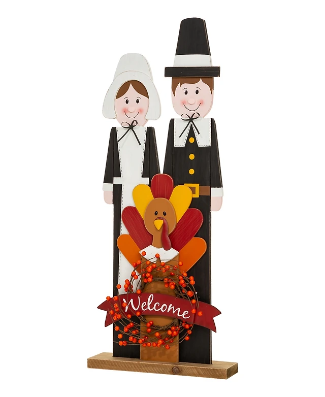 Glitzhome Harvest Wooden Pilgrim Couple Thanksgiving Porch Sign