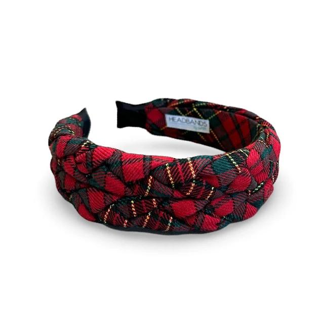 Blushing Braid Headband - Red + Green Plaid