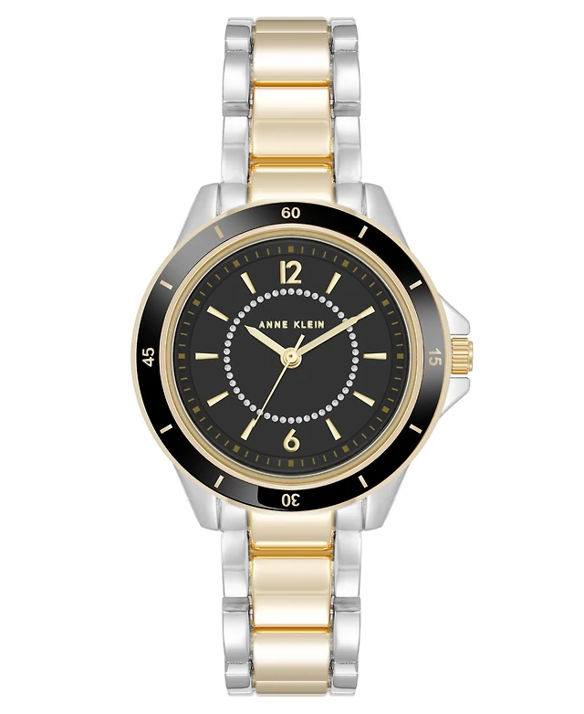 Anne Klein Women's Quartz Black and Two-Tone Metal Alloy Watch, 31mm