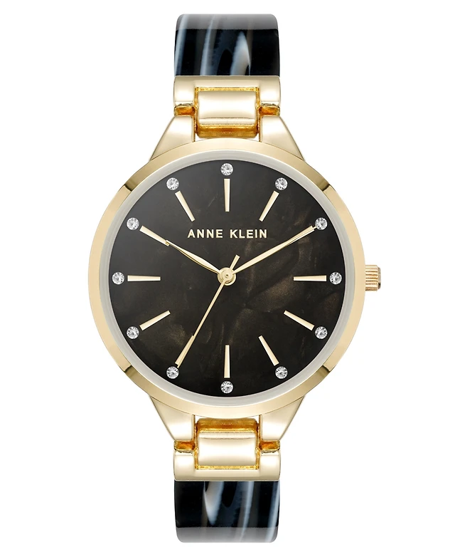 Anne Klein Women's Quartz Round Black and Gold-Tone Metal Alloy Watch, 30mm