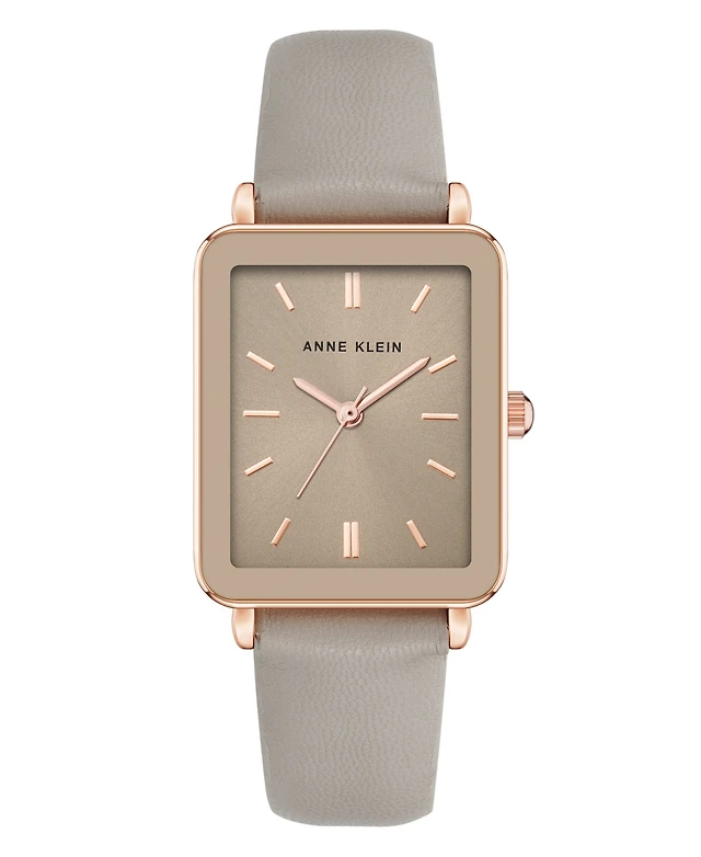 Anne Klein Women's Quartz Rectangular Taupe Leather and Rose Gold-Tone Metal Alloy Watch, 26mm