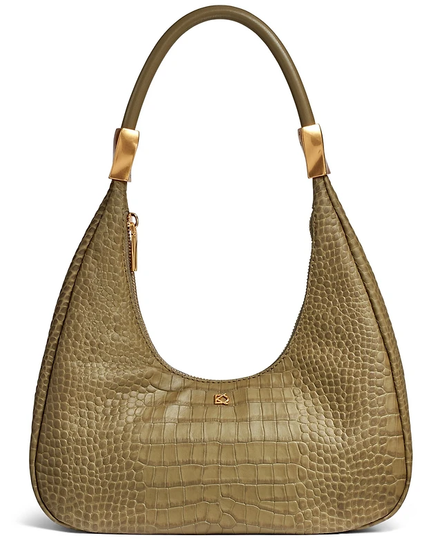 Donna Karan New York Quogue Embossed Croco Leather Small Hobo Shoulder Bag