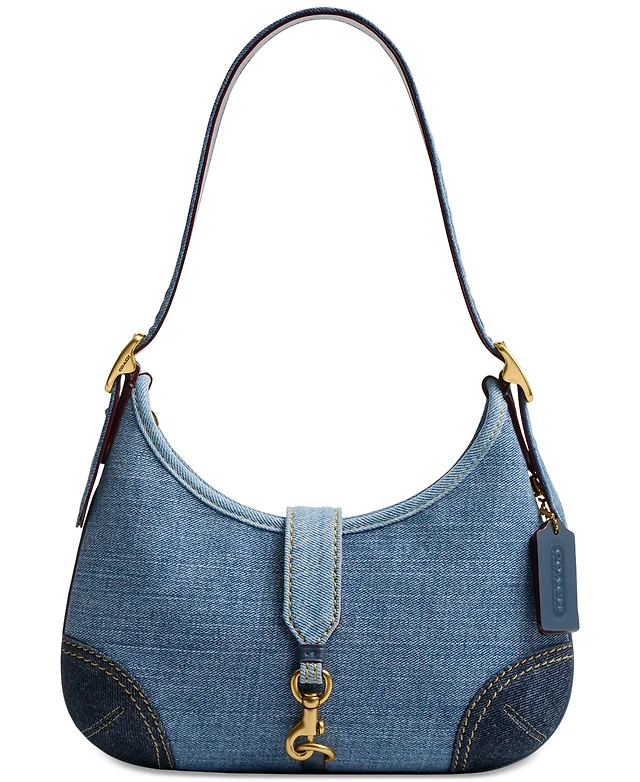 True Religion Women's Quilted Denim Hobo Bag with Gold Detailing