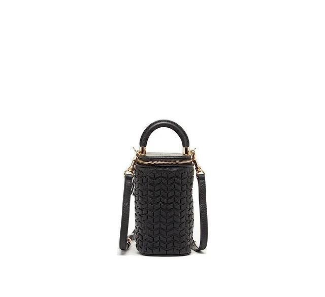 Susu Mini Purse Leather Black Crossbody Bag Weave Small Bucket Bag Women's Handbag