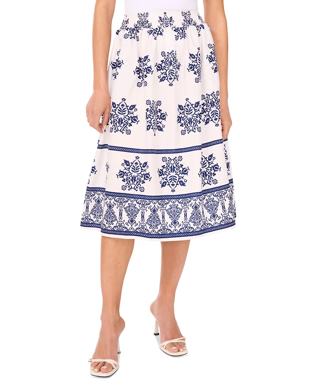Vince Camuto Women's Placement-Print Pull-On Midi Skirt