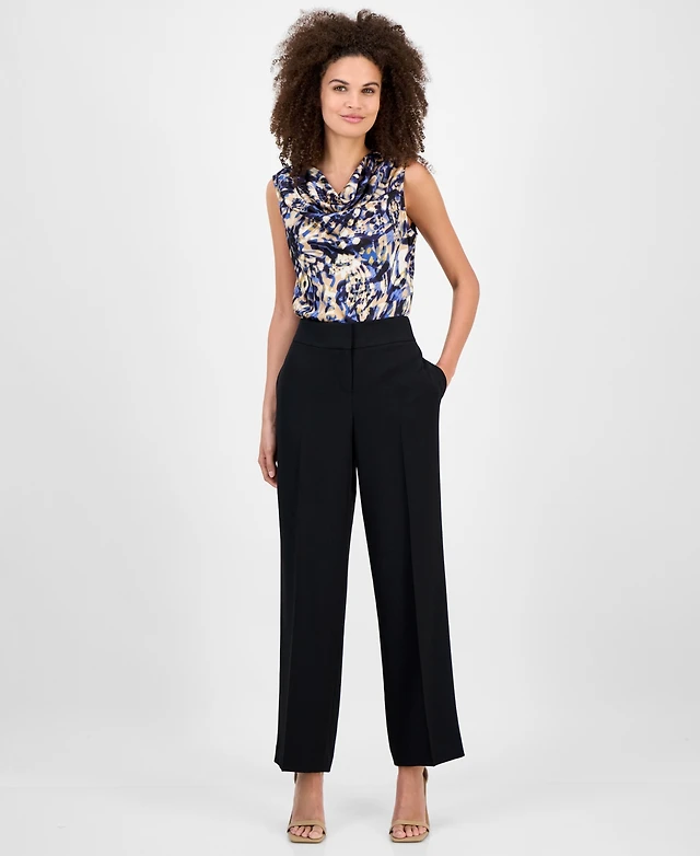 Kasper Mid-Rise Pleated Crepe Pants, Regular & Petite