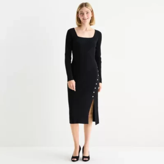 by&by Womens Juniors Long Sleeve Midi Sweater Dress