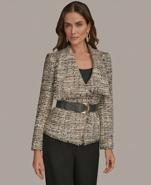 Donna Karan New York Women's Belted Tweed Jacket, Regular & Petite