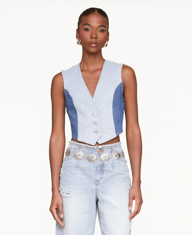 Avec Les Filles Women's Soutache Denim Button-Front Vest