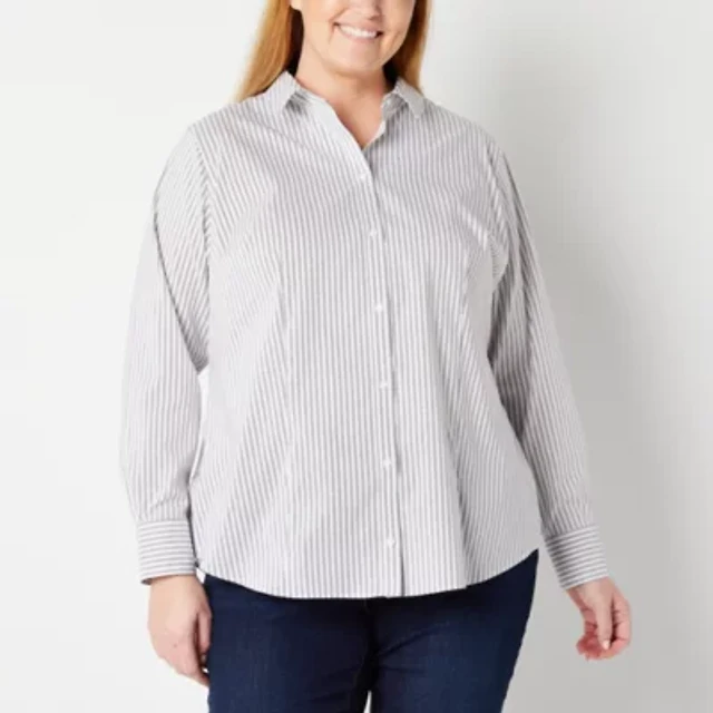 Poplin Striped Flutter Sleeve Button Up Gramercy Shirt