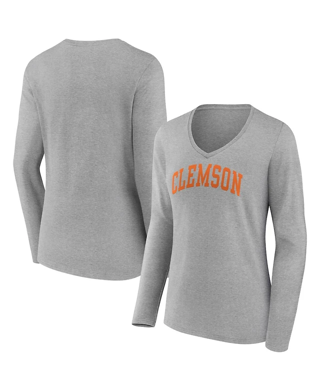 Women's Fanatics Heather Gray Clemson Tigers Basic Arch Long Sleeve V-Neck T-shirt