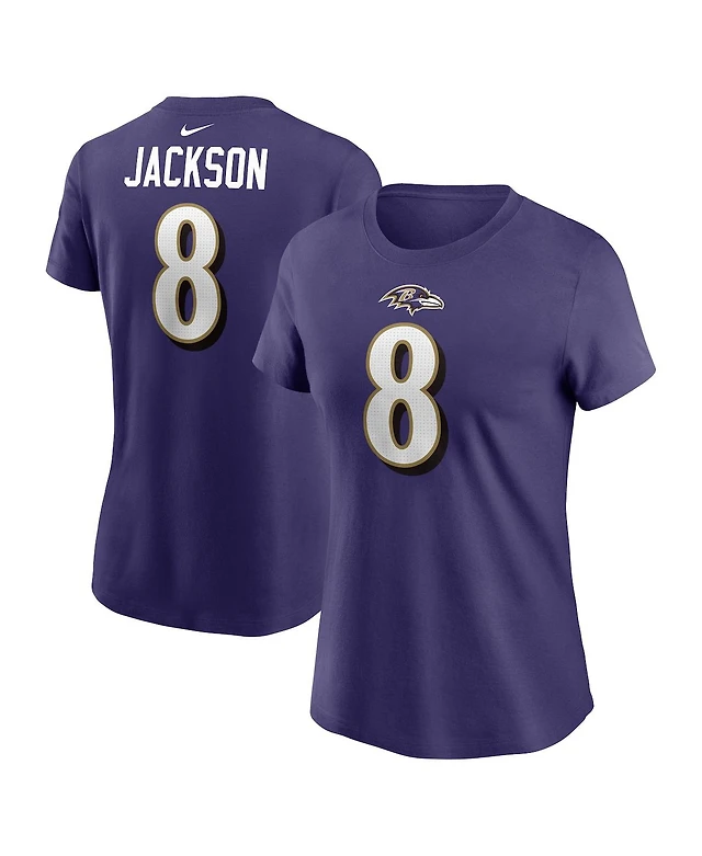 Women's Nike Lamar Jackson Purple Baltimore Ravens Player Name and Number T-shirt