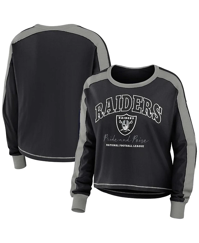 Women's Wear by Erin Andrews Black, Silver Las Vegas Raiders Color Block Modest Crop Long Sleeve T-shirt
