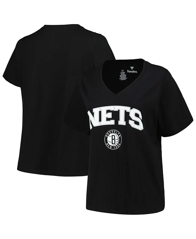 Women's Profile Black Brooklyn Nets Plus Arch Over Logo V-Neck T-shirt