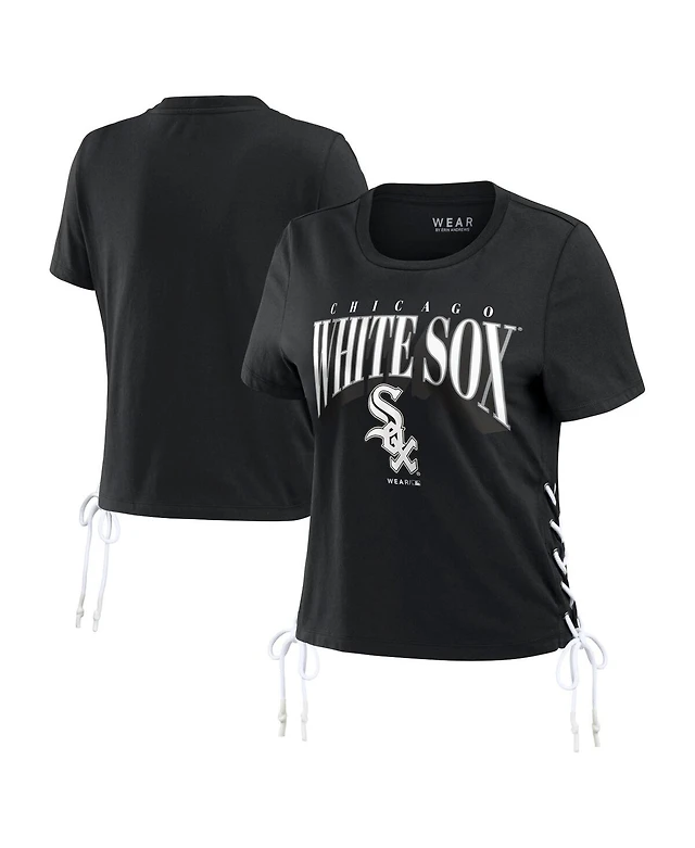 Women's Wear by Erin Andrews Black Chicago White Sox Side Lace-Up Cropped T-shirt
