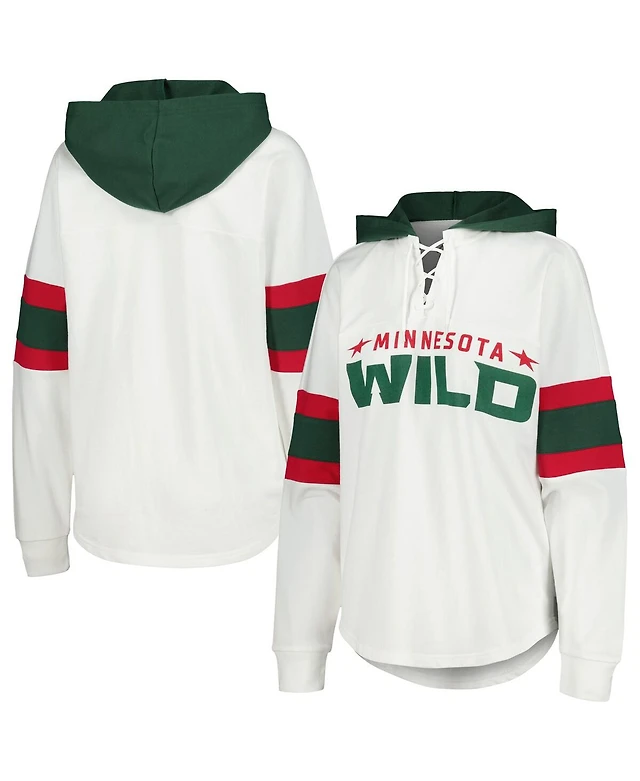 Women's G-iii 4Her by Carl Banks White, Green Minnesota Wild Goal Zone Long Sleeve Lace-Up Hoodie T-shirt
