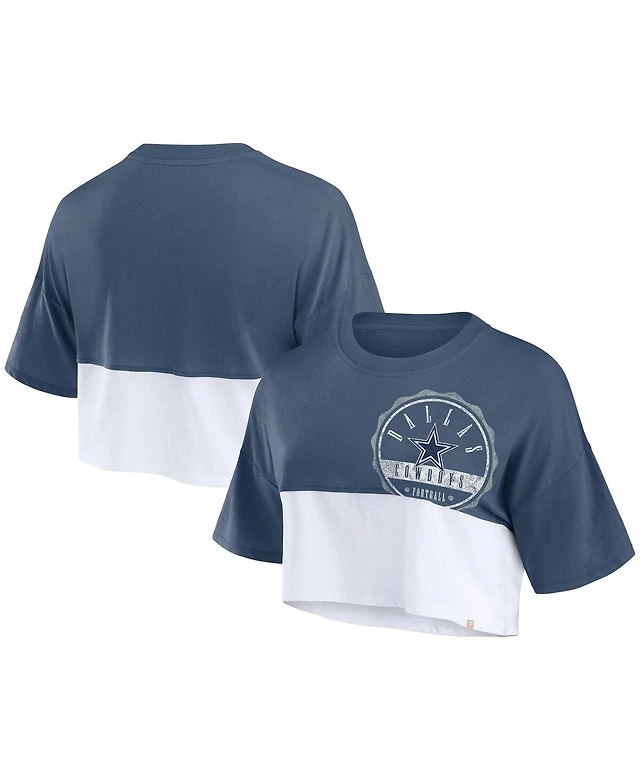 Fanatics Women's Navy/White Dallas Cowboys Boxy Color Split Cropped T-Shirt