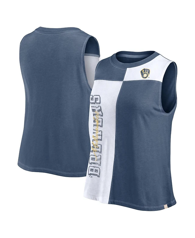 Fanatics Women's Navy/White Milwaukee Brewers Color-Block Tank Top
