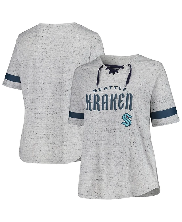 Fanatics Women's Heather Gray Seattle Kraken Plus Lace-Up T-Shirt