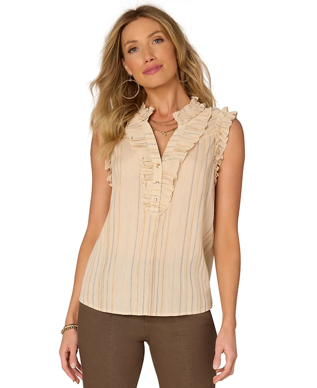 Avec Les Filles Women's Ruffle Yoke Blouse