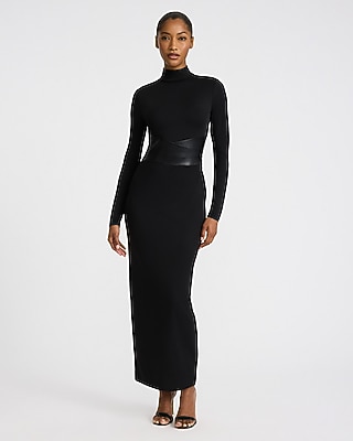 Body Contour High Compression Mock Neck Leather Belted Maxi Dress