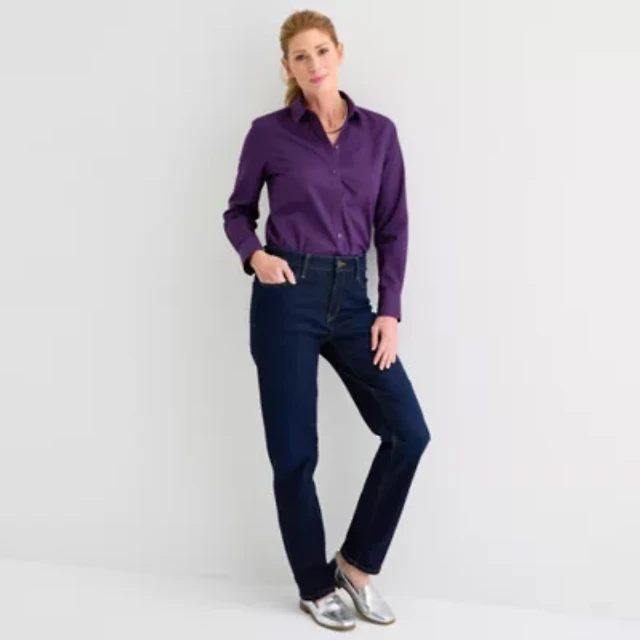 Liz Claiborne Womens Long Sleeve Regular Fit Wrinkle Free Poplin Button-Down Shirt