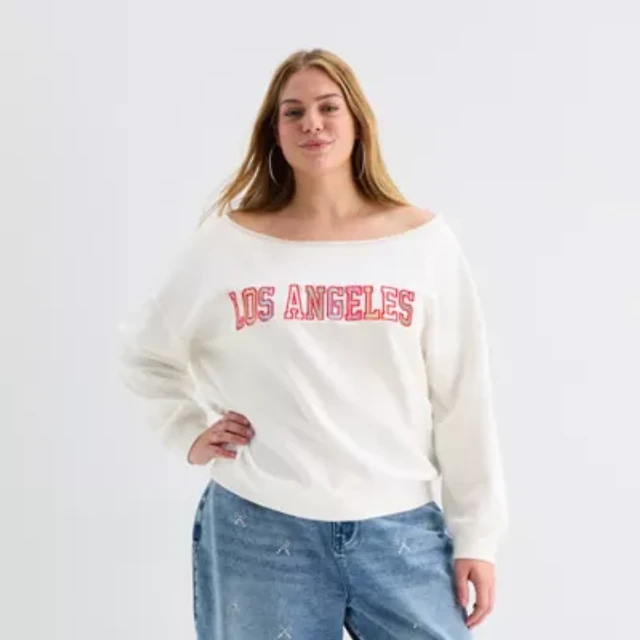 Forever 21 Womens Juniors Plus Boat Neck Long Sleeve Sweatshirt