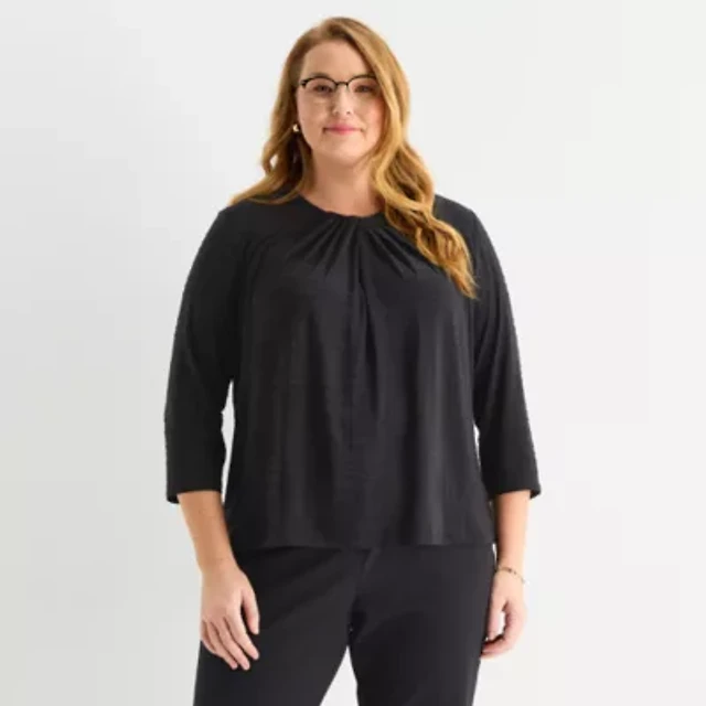 Liz Claiborne Womens Plus Crew Neck Short Sleeve Blouse