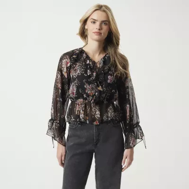 a.n.a Womens Plus Round Neck Long Sleeve T-Shirt