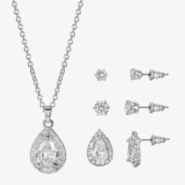 Sparkle Allure Light Up Box Womens Cubic Zirconia Pure Silver Over Brass -pc. Jewelry Set