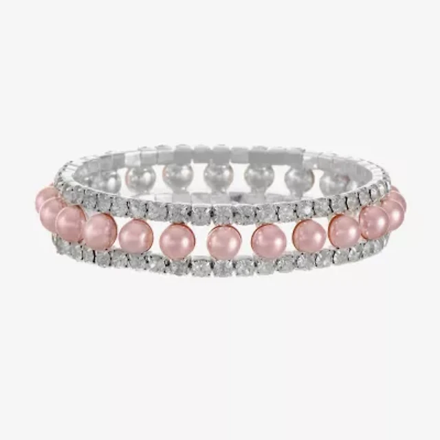 Bijoux Bar Delicates Gold Tone Womens Glass Round Stretch Bracelet