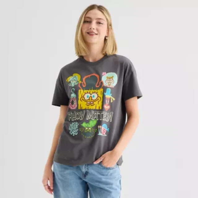 Arizona Womens Juniors Crew Neck Short Sleeve Oversized Graphic T-Shirt
