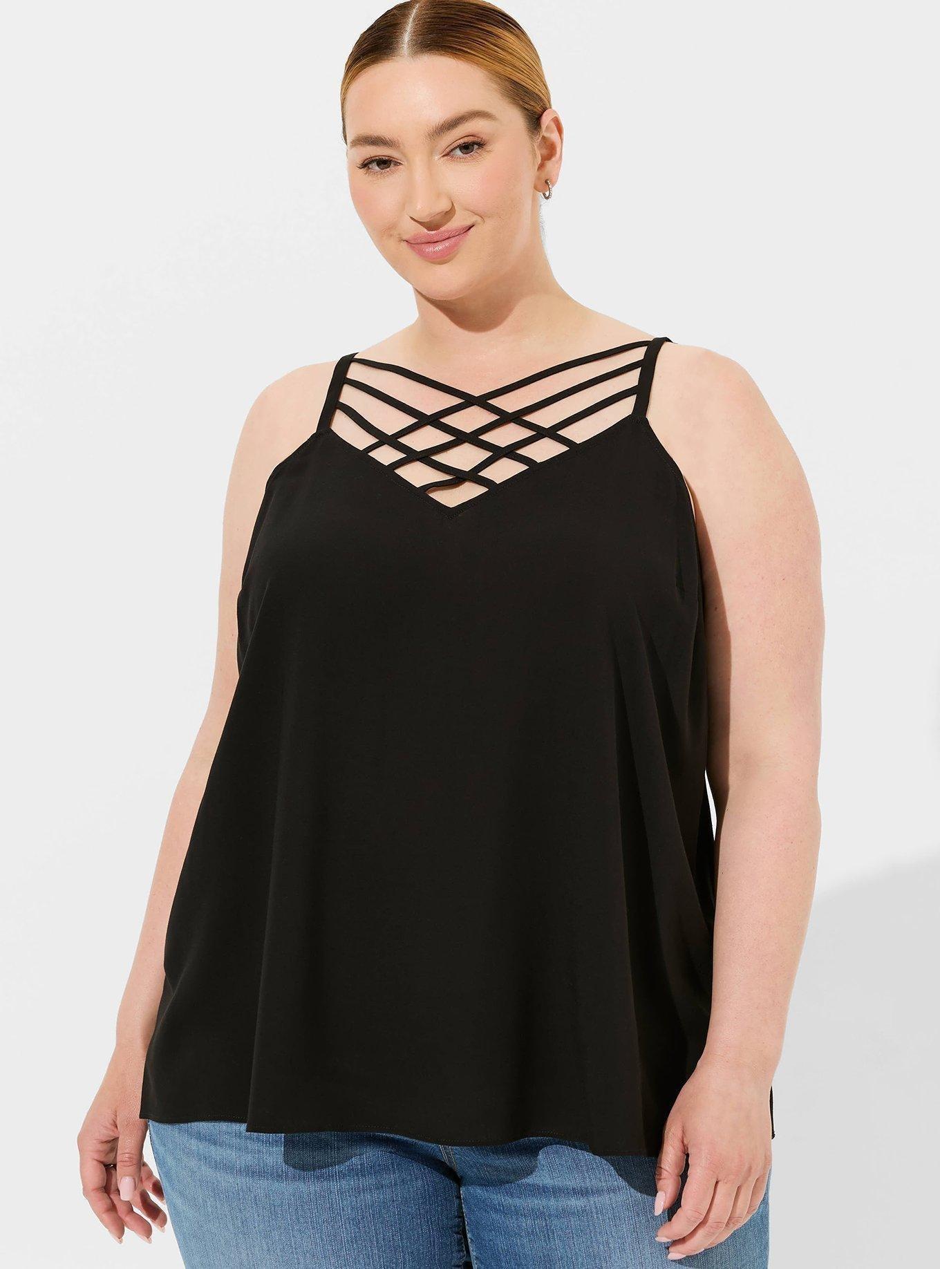 FIT Model is 5'10" wearing size 1. Adjustable straps Measures 30" from shoulder (size 2). MATERIALS + CARE Challis woven fabric: New, improved, and loved by all—and still lightweight, drapey, and (really!) machine-washable. Stretch level: None. 72% viscose, 28% lyocell Machine wash cold. Tumble dry. Imported. DETAILS V-neck; V-back. Strappy detail. Sleeveless. WHY WE LOVE IT Whether you style it on its own or with your favorite jacket, this lightweight top is not only stylish, but also a customer favorite.