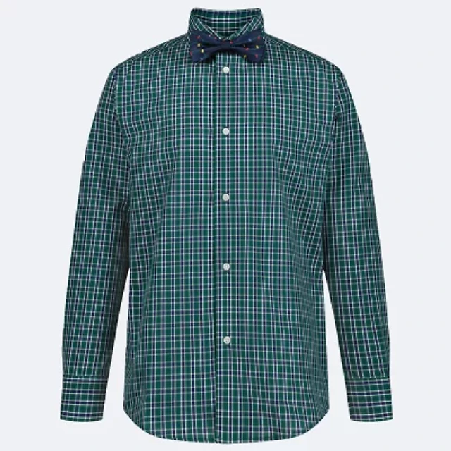 Men's Regular Fit Non-Iron Polo Button-Down Collar Blue Check Pinpoint Dress Shirt