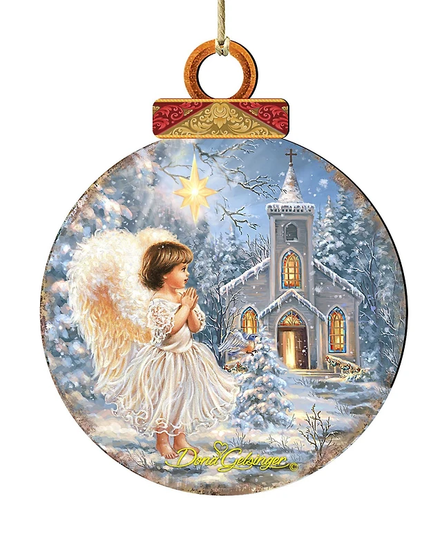 Designocracy Angel Descending from Heaven Cross Christmas Glass Ornaments G. DeBrekht