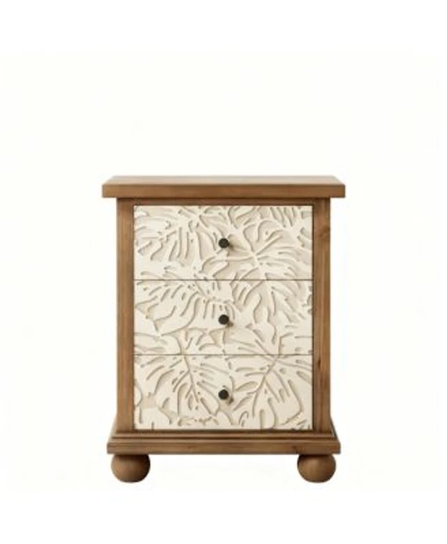 Yigii Rustic 3-Drawer Nightstand with Leaf Carvings