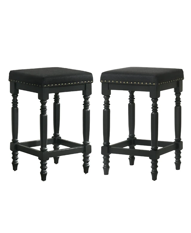 Streamdale Furniture Streamdale Rustic Black Counter Stools (Set of 2) - 26 Inch, Padded Seat & Nailhead Trim