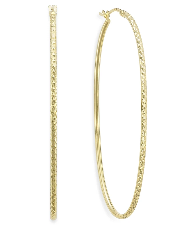 Diamond-Cut Oval Hoop Earrings 14k Gold Vermeil, 2-3/4" (Also Sterling Silver)
