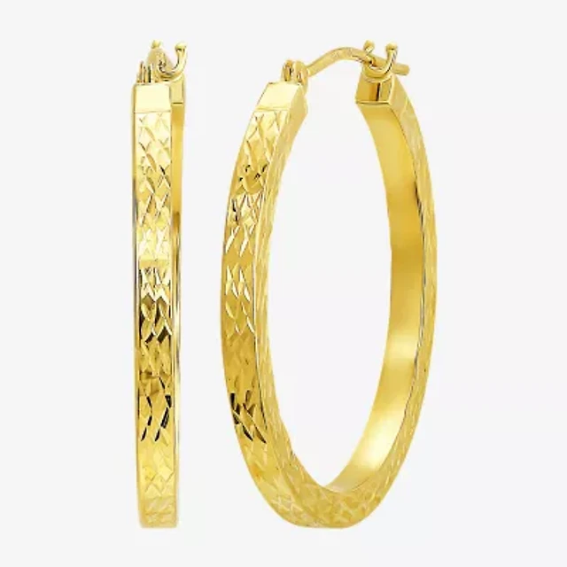 Womens 14K Gold 25mm Oval Hoop Earrings