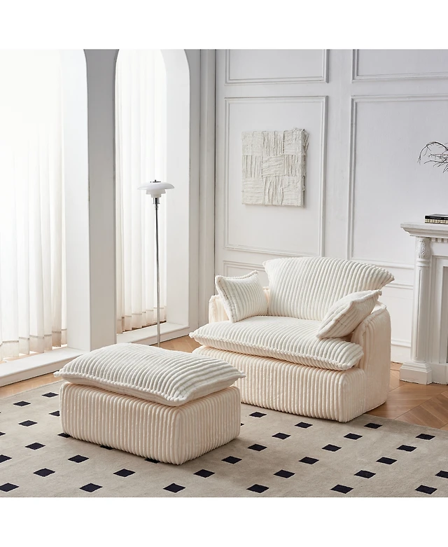 Streamdale Furniture 31" Modular Cloud Armless Chair with Ottoman Set, Ivory