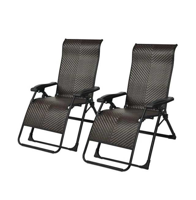 Slickblue 2PCS Patio Rattan Zero Gravity Lounge Chair