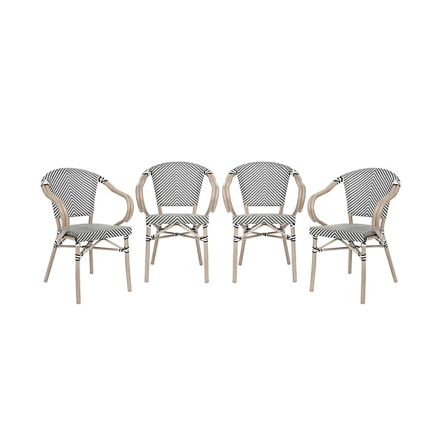 Gymax Outdoor Dining Chairs Set of 4 with Breathable Fabric Armrests High Back