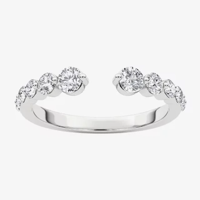 I, Si2 Womens 2 1/10 CT. T.W. Lab Grown White Diamond 10K Gold Oval Side Stone Engagement Ring