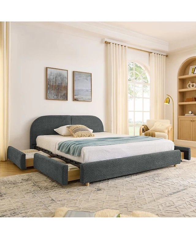 Streamdale Furniture Streamdale King Size Upholstered Bed Frame, Modern Minimalist, Curved Headboard, Drawer Storage