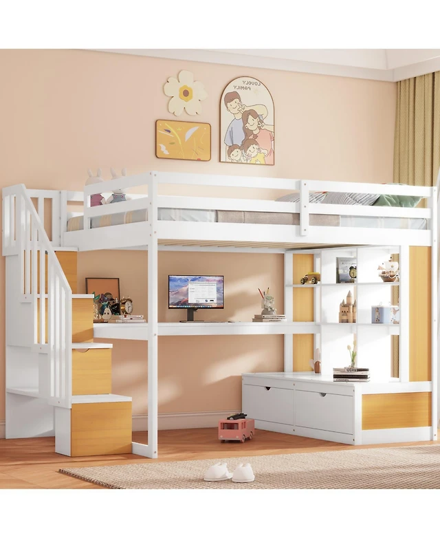 Streamdale Furniture Wood Loft Bed with Cabinet, Bookshelf & Desk