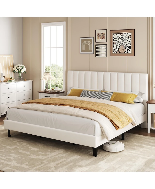 Slickblue Platform Bed Frame with High Upholstered Headboard