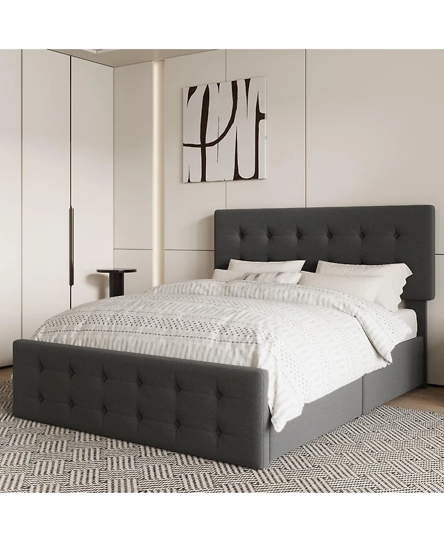 Gaomon Bed Framewith 4 Storage Drawers Headboard Linen Upholstered Platform Bed Frame With Wooden Slats Support Button Tufted Design No Box Spring Needed
