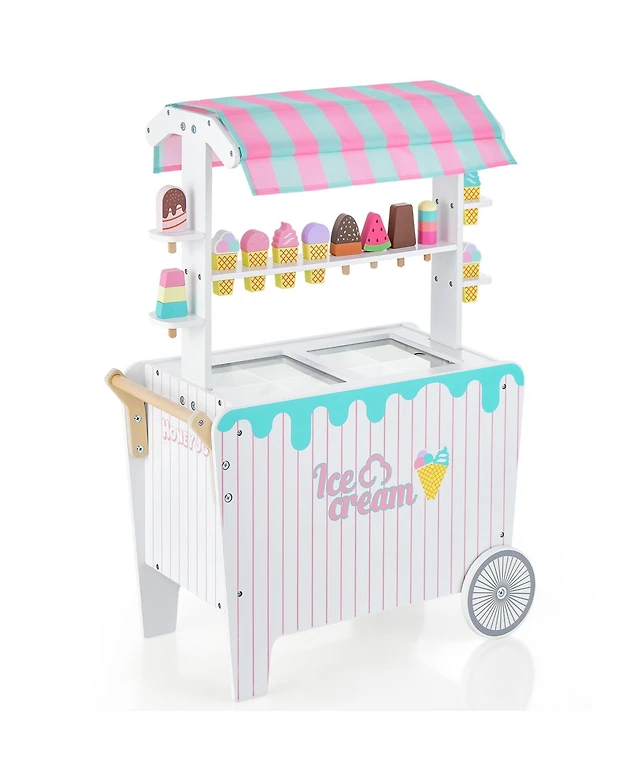 Costway Kid's Ice Cream Cart Food Trunk Play Toy Set with Display Rack & Accessories