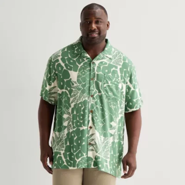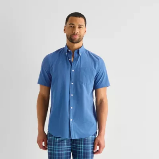 Cubavera Chambray Pintuck Mens Short Sleeve Regular Fit Button-Down Shirt