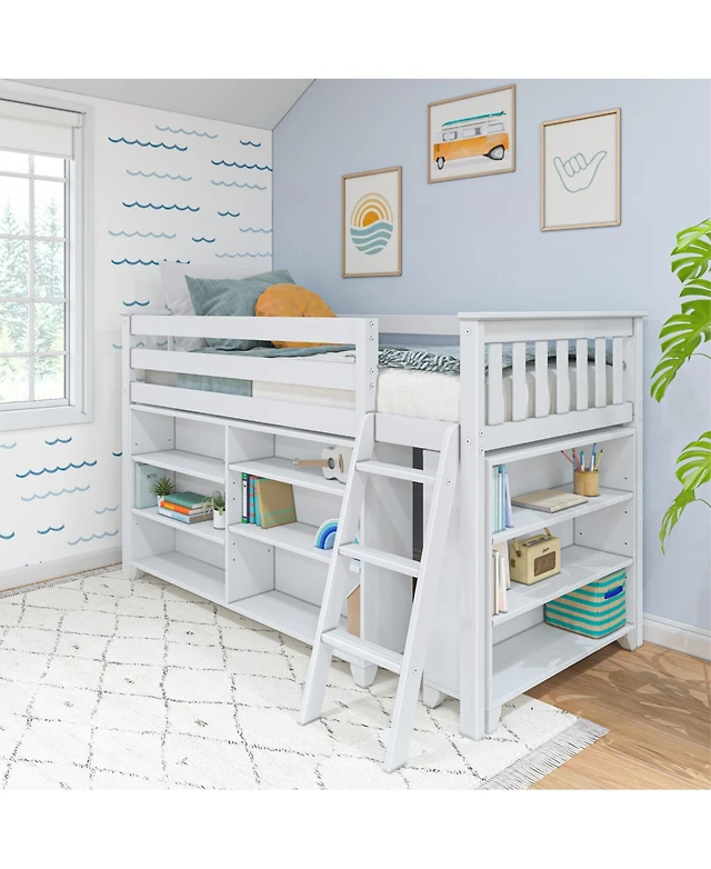 Kids Bookshelf with Toy Storage, Wooden Toddler Bookcase with Cubby Shelves, Vintage White